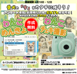わんちゃんと一緒に楽しめる「わんこ免許証作成」や「チェキ撮影会」を実施します!